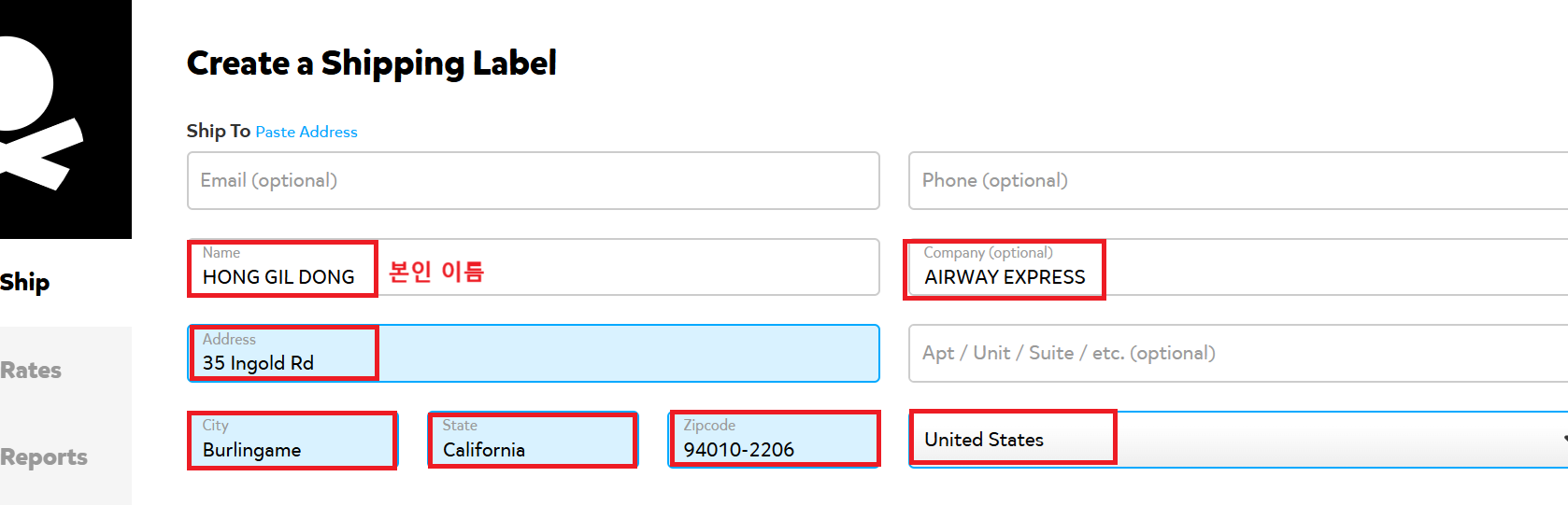 UPS ȤÀº USPS DROP OFF ¼ºñ½º DROP OFF ·¹ÀÌºí ½ÅûÇϽǰ÷ https://www.pirateship.com/ ¼öÃëÀÎ : º»ÀÎ ¿µ¹® À̸§ ȸ»çÀ̸§ (Çʼö) AIRWAY EXPRESS â°íÁÖ¼Ò : 35 INGOLD RD, BURLINGAME CA 94010