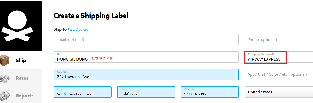 UPS ȤÀº USPS DROP OFF ¼ºñ½º DROP OFF ·¹ÀÌºí ½ÅûÇϽǰ÷ https://www.pirateship.com/ ¼öÃëÀÎ : º»ÀÎ ¿µ¹® À̸§ ȸ»çÀ̸§ (Çʼö) AIRWAY EXPRESS â°íÁÖ¼Ò : 242 Lawrence Ave. South San Francisco, CA 94080 Çѱ¹À¸·Î ¹°Ç°À» º¸³»½Ã±â ¾î·Á¿òÀÌ ÀÖÀ¸¼Ì´ø °í°´´Ôµé¿¡°Ô ÁÁÀº ¼Ò½ÄÀÌ µÉ°ÍÀÔ´Ï´Ù.